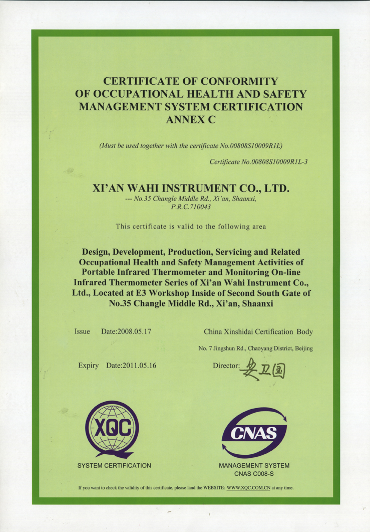 职业健康安全管理体系认证证书--英文